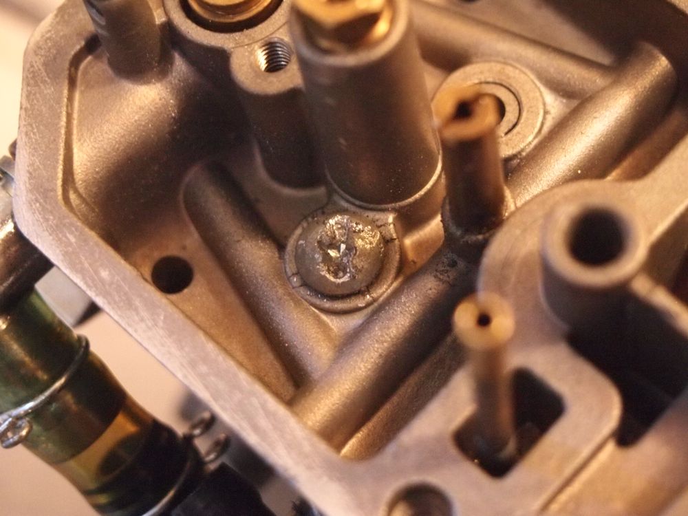 その後、切りくずが出てますのでキャブを洗浄して、折角中子を外したのだから、中子のバリを軽くさらっておいて、内壁とスロットルバルブをメタルポリッシュで磨いて、ボディの洗浄ついでにメインジェット、スロージェット、ニードルジェットもクリーナーぶっかけておいて、ようやく組み上げました。同然、各部のネジは、キュッと軽く締めるだけです。NJなんか、MJといっしょに緩むくらいで十分だと思います。