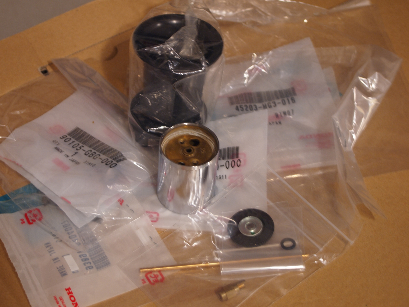 というような報告をさせて頂いて、またスロットルバルブはずすの面倒でしょう、中古ですし、とお安めでカッタウェイ1.5のスロットルバルブを譲って頂きました。それならということで、CR小型用のロングファンネルもお買い上げ。