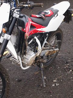 最初のヒルクライムのみ、ラインを読み間違い路面状態の悪いところを通ったため転んでしまいましたが、翌周以降はちゃんと登って降りられましたよ。雨が降っても、関東ローム層のようにヌタヌタにはならないので以外と走りやすいのです。でもロックセクションではなくとも尖った火山岩がゴロゴロしているのはビビリますが。