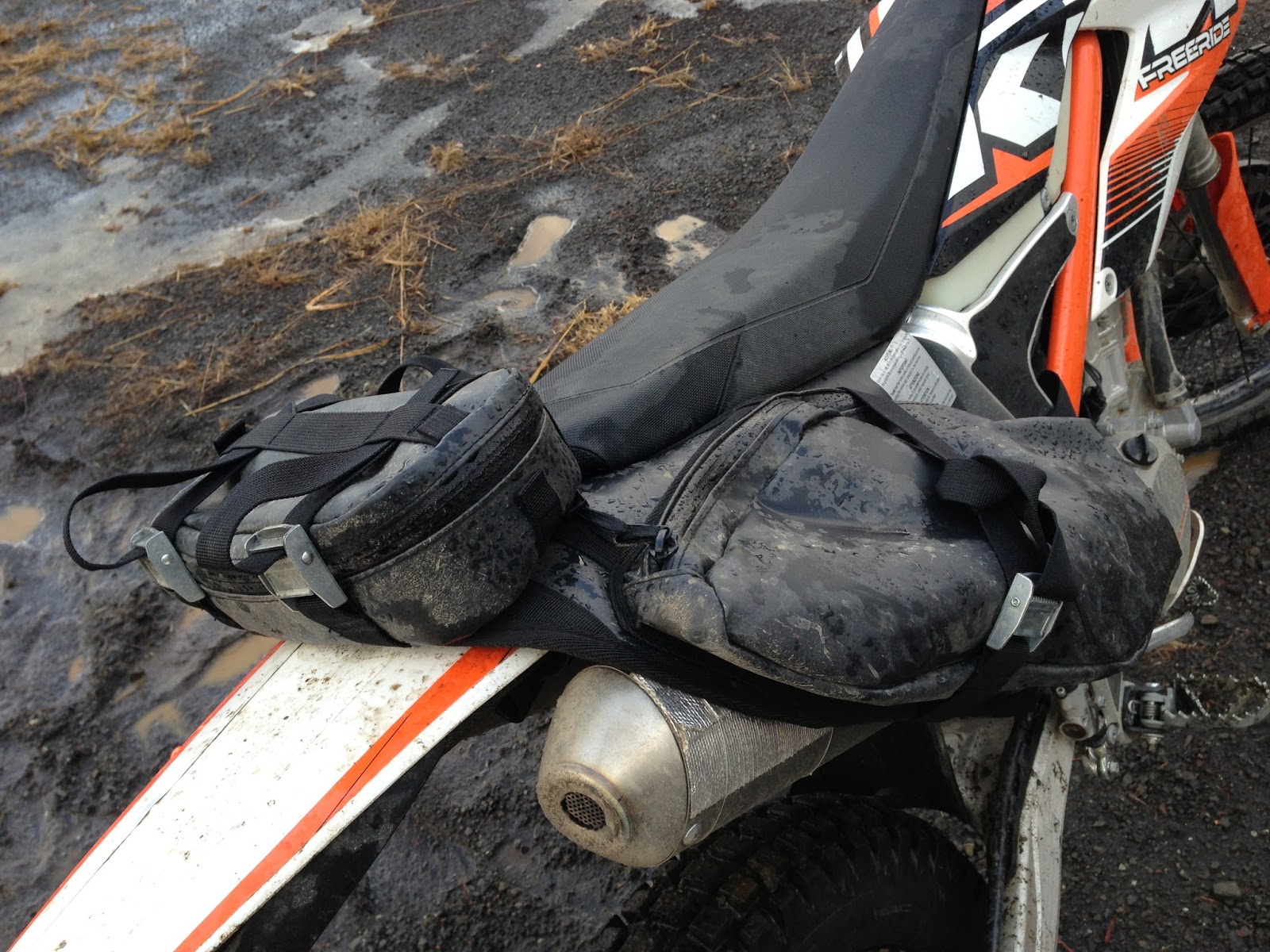 両サイドには、1Lの携行缶をいれても、カッパやスペアのチューブ、タイヤレバーを入れておけるスペースはあります。濡れても中身は無事でした。