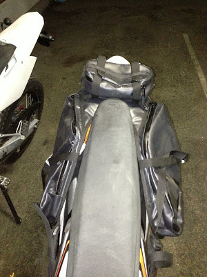 バッグ全体をもう少し前よりに装着すれば、サイレンサーに触れることはないのですが、そうするとバッグを取り外さないとシートを外すことができず給油できません。