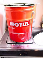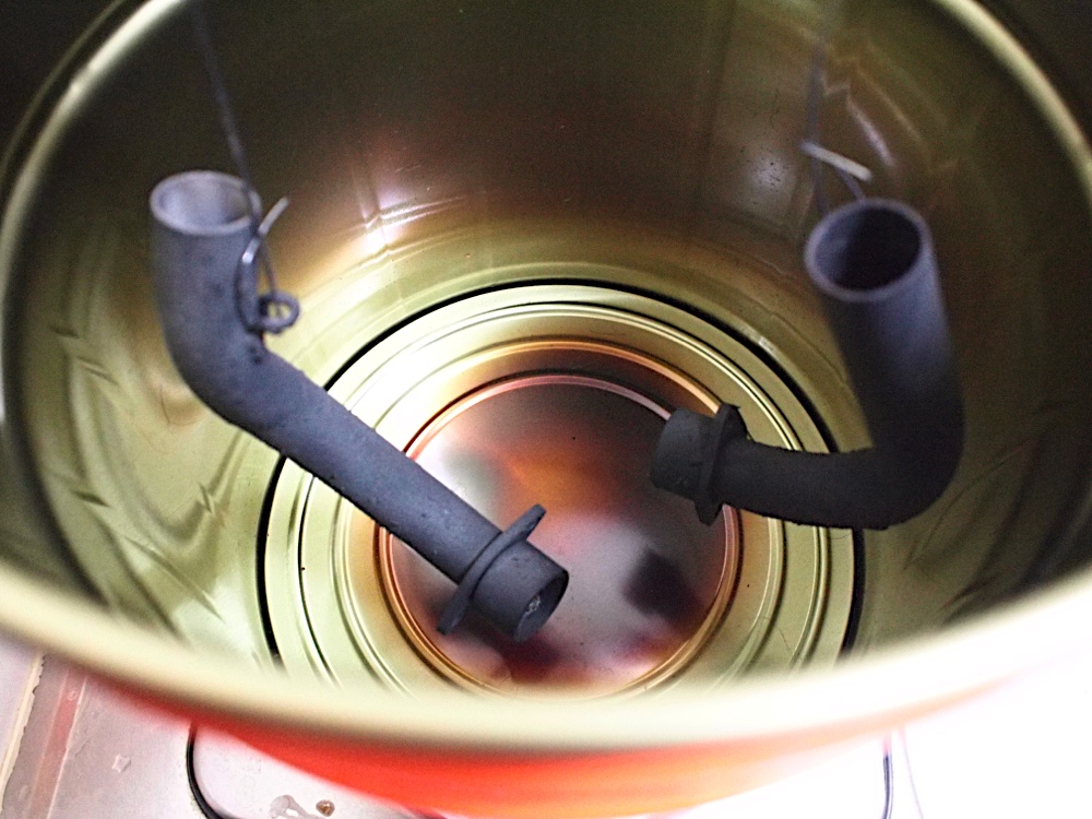 一通り吹き付けたら1時間ほど自然乾燥させた後は、ペール缶にいれて、台所で加熱。