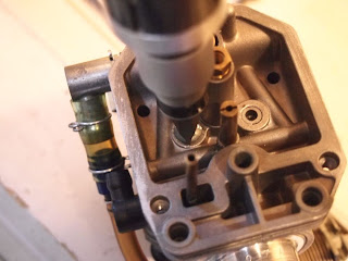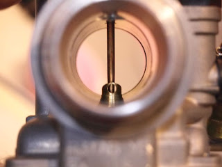 その後、切りくずが出てますのでキャブを洗浄して、折角中子を外したのだから、中子のバリを軽くさらっておいて、内壁とスロットルバルブをメタルポリッシュで磨いて、ボディの洗浄ついでにメインジェット、スロージェット、ニードルジェットもクリーナーぶっかけておいて、ようやく組み上げました。同然、各部のネジは、キュッと軽く締めるだけです。NJなんか、MJといっしょに緩むくらいで十分だと思います。