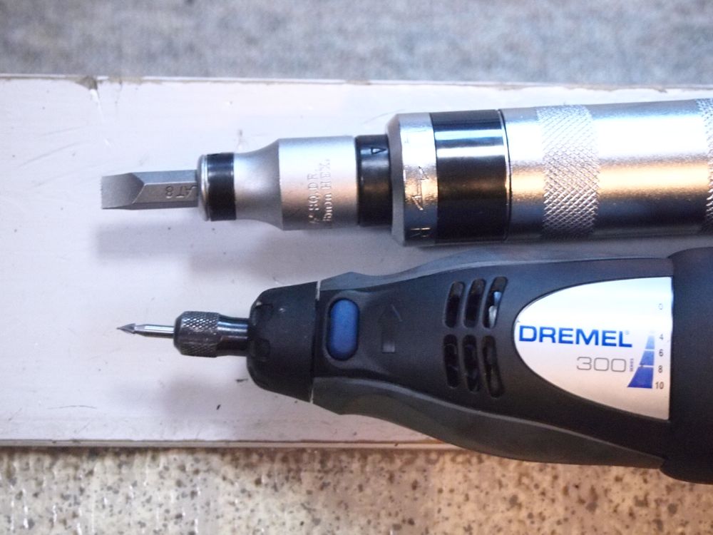 で、リューターでマイナスの一番大きいビットがはまるように切り込みを入れ