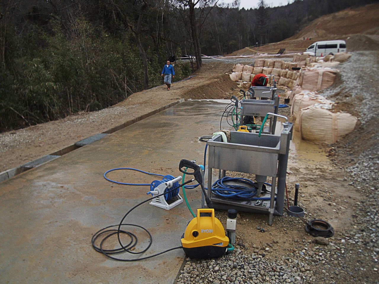洗車場が備え付けられています。使ってもいいよではなく、ここで泥落としてからパドックに戻りなさい、パドックには泥をもちこまないでね。です。洗車待ちにはなりましたが、後日洗車がラクですね。